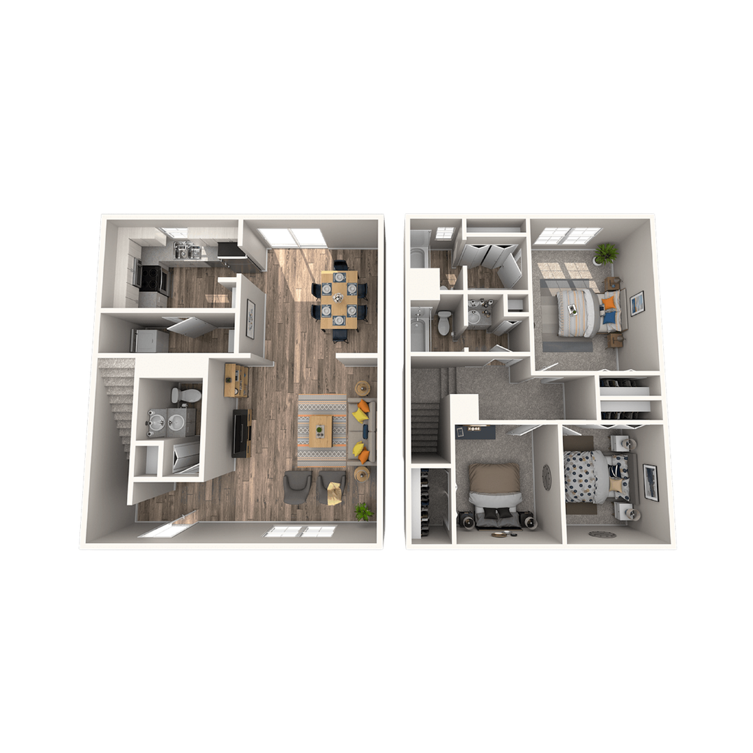 Our Premium Finish 3 Bedroom, 2.5 Bathroom Townhomes provide 1,510 square feet of beautifully designed living space with the most enhanced interior finishes in the community.
